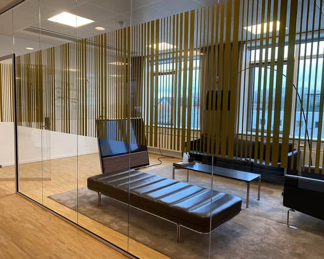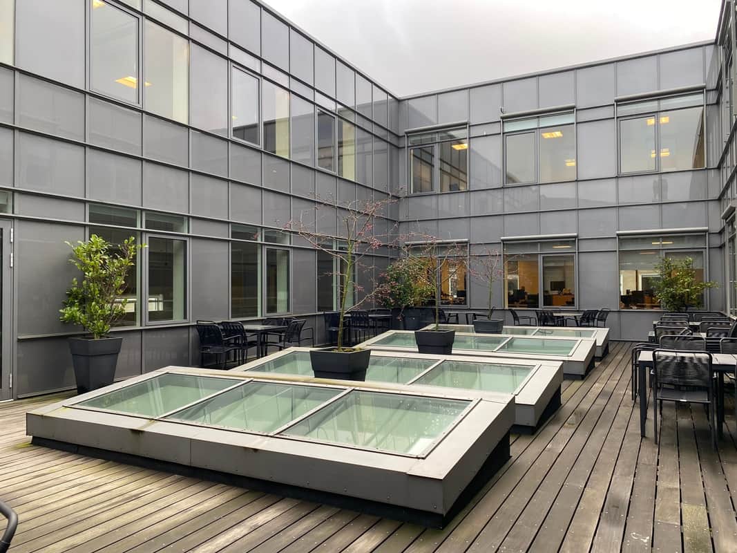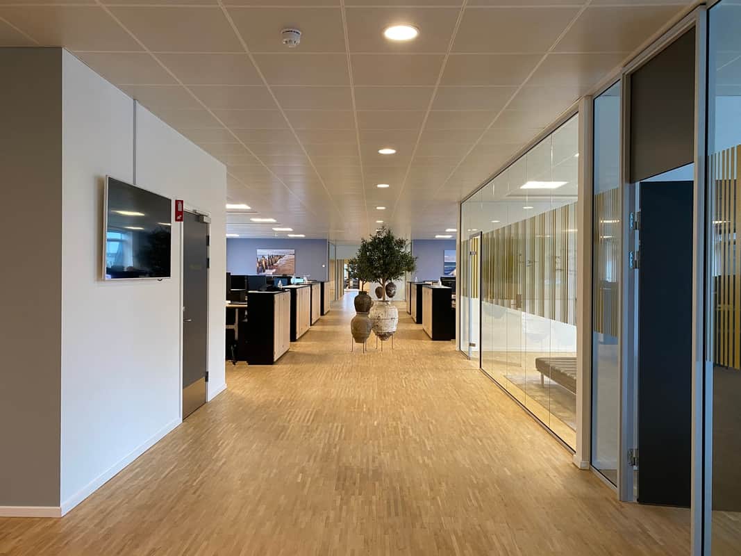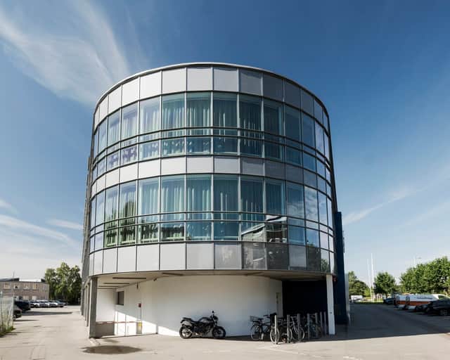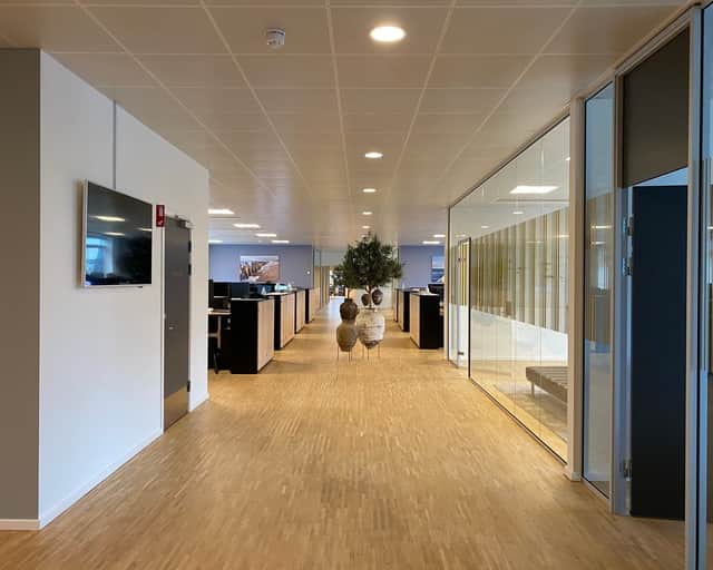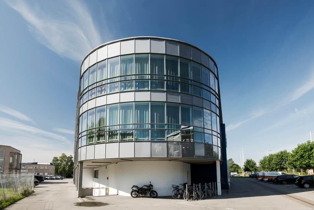 Der er parkeringsmuligheder for medarbejdere og gæster foran og bagved ejendommen samt p-kælder.