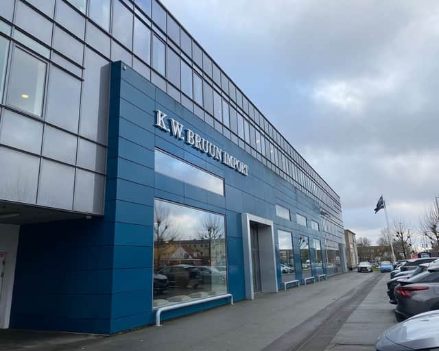 Ejendommen på Hovedvejen 1-7 er en domicilejendom, hvor K.W. Bruun Import A/S har sit hovedkontor med cirka 190 ansatte. K.W. Bruun er en af Nordens største bilimportører og står for bil- og reservedelsimport af mærker som Peugeot, Citroën og Mitsubishi i både Danmark og Sverige.