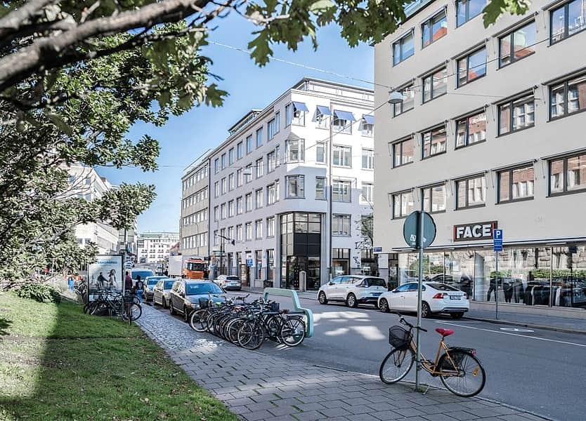 Inbjudande hörnfastighet fördelad på 6 våningsplan. I fastigheten finns en variation av kontor, butiker samt parkeringsplatser i källarplan. strategisk plats med närhet till affärsdistrikt, banker, restauranger och andra bekvämligheter. Det kan vara praktiskt för både medarbetare och kunder att nå platsen.