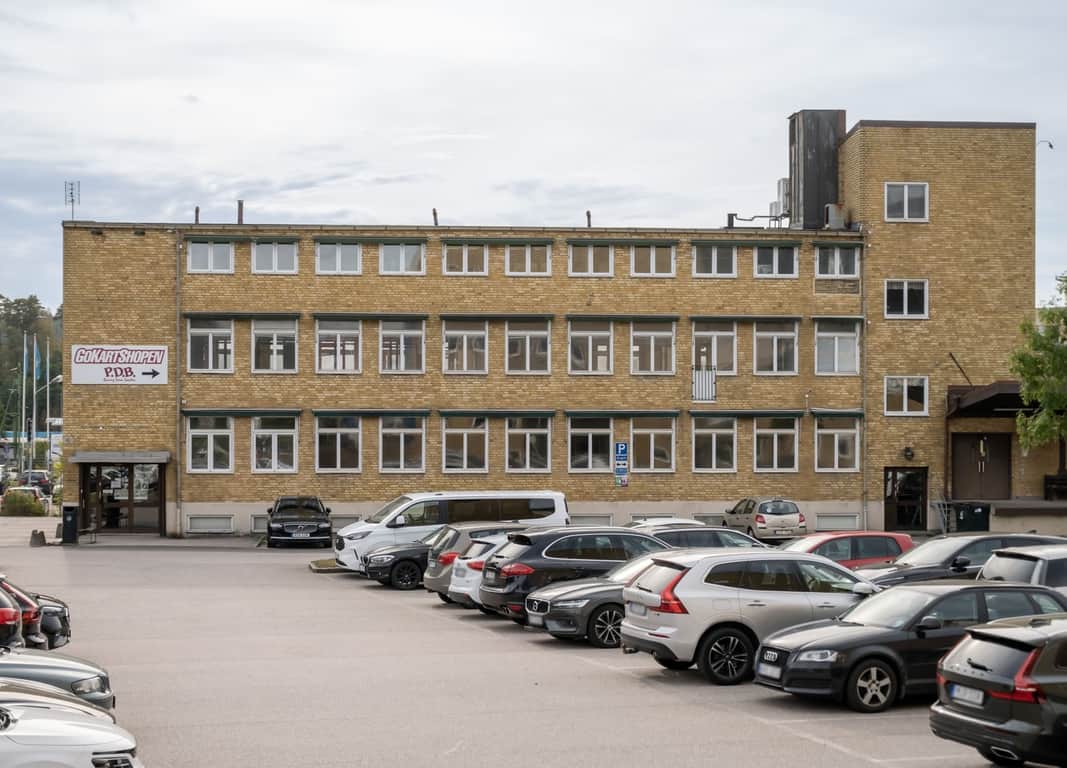 Byggnaden är en kontorsfastighet i 3 våningar med garage i källaren.
