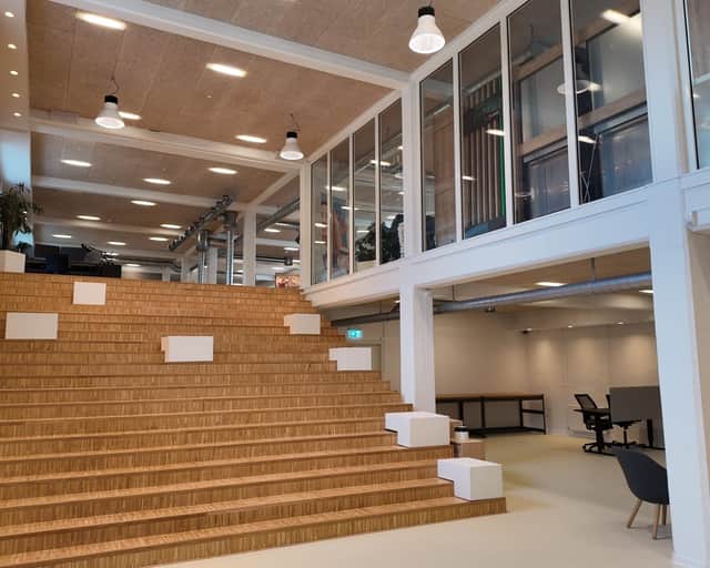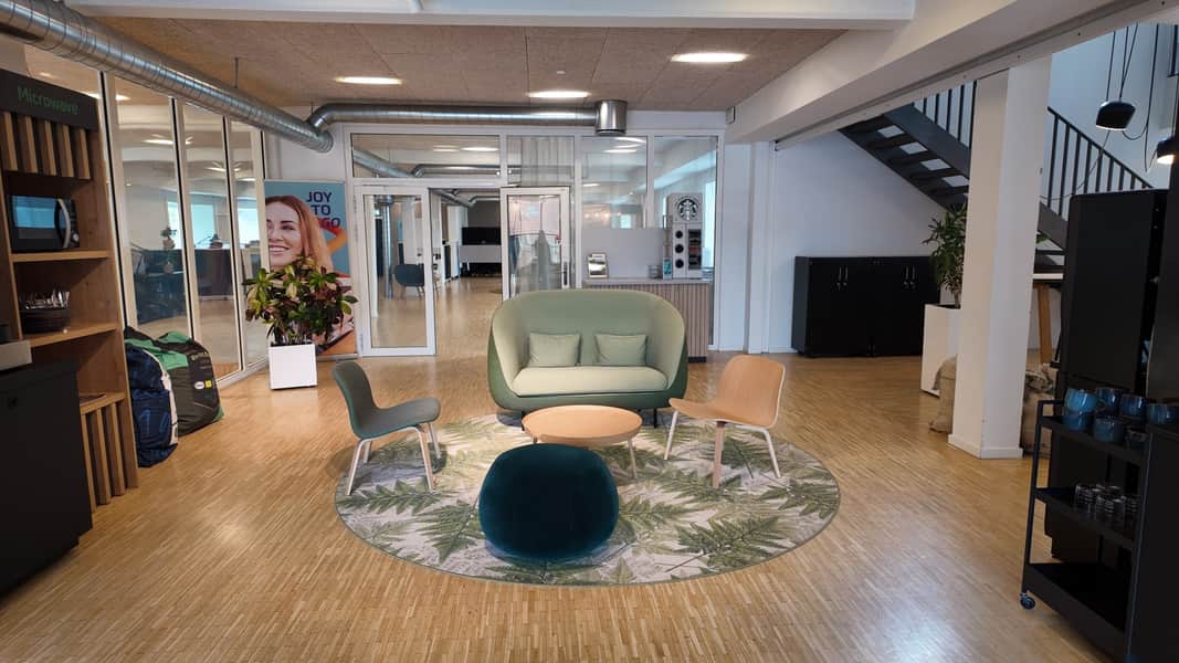 Ejendommen har et stort fælles køkken med siddeområde, gode mødelokaler i forskellige størrelser og en hyggelig baggård. Køkkenetområdet kan også benyttes som et mindre konferencelokale.