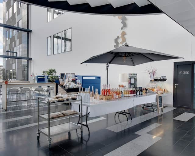 I ejendommen er der en lækker fælles kantine med gode mødefaciliteter, og den store trappe i atriummet skaber en smuk indgang til ejendommen og giver samtidig flot adgang til lejemålene for dem, der foretrækker at bruge trapperne frem for elevatorerne.
