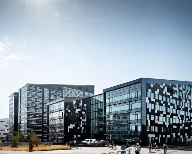 Green Building-certificeret og energi-effektiv ejendom med god fælles kantine, terrasse ved vandkanten og p-kælder.