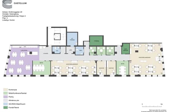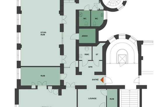 Genomtänkt planlösning för en dynamisk arbetsmiljö med en öppen och välkomnande reception och lounge som skapar en trevlig miljö för både medarbetare och besökare. Öppet kontorslandskap på ca 80 kvm ger en flexibel yta med plats för samarbete och produktivitet, tre mötesrum, två samtalsrum, tre toaletter varav en med dusch samt ett pentry med matplats. Loungedelen om 54 kvm kan med fördel användas som ett öppet kontorslandskap.