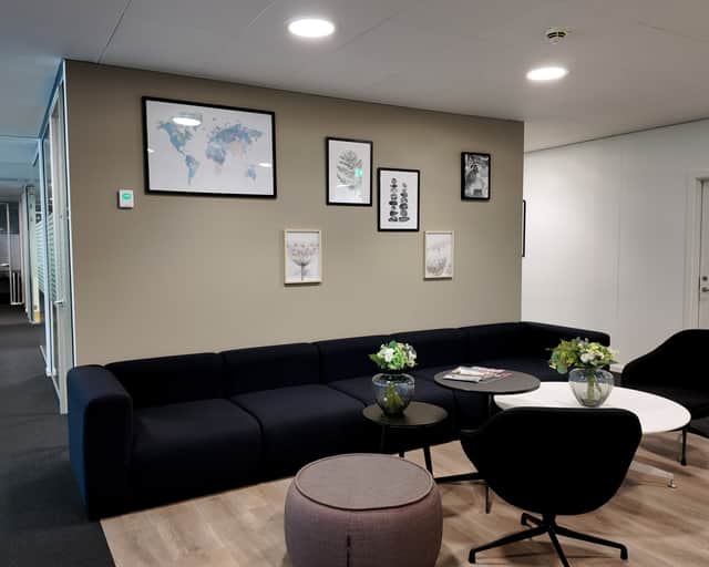 Arkitekturen og indretningen gør, at der fra næsten alle arbejdspladser er en fantastisk udsigt over enten vandet eller byen. De store vinduer i kontoerne giver et dejligt naturligt lys og fornemmelsen af luft og rummelighed.
